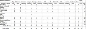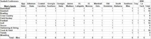 The group with 14 NCAA sports includes UL-Lafayette, ULM, and next year’s (let’s hope) new Sunbelt member, Louisiana Tech.
