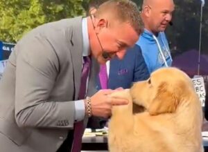 ESPN’s broadcast team became so bored during the fourth quarter that analyst Kirk Herbstreit put his TV headset over the ears of his support dog (a golden retriever) during the final minutes of this massive blowout.