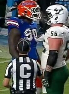 Florida was holding onto a narrow two point lead late in the fourth quarter when Brenden “Hockaloogie” Bett let loose on an unsuspecting South Florida offensive lineman.