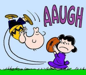 It’s much the same as Peanuts character Charlie Brown after Lucy pulls the football away from him just before he gets to kick it.